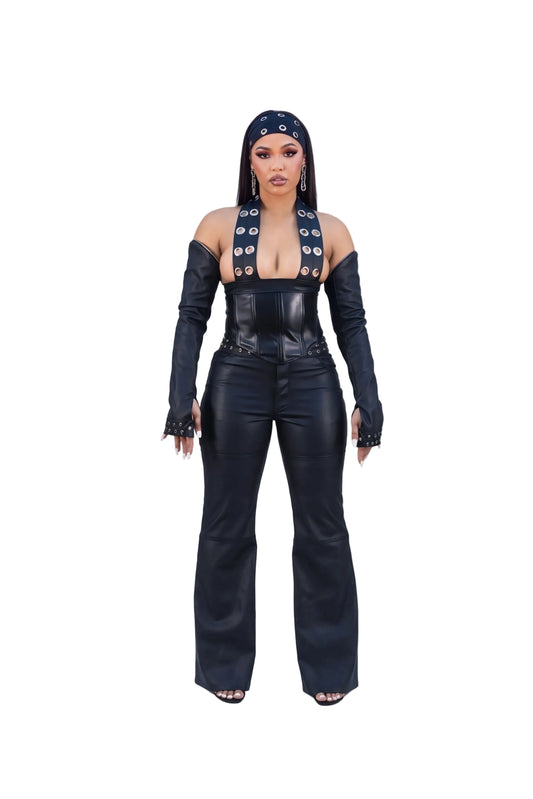 Black Plugged Logo Leather Corset