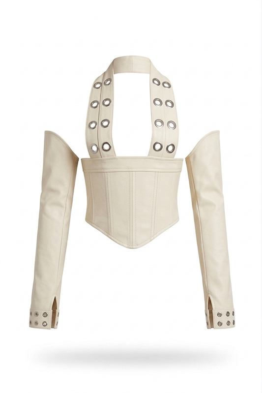 White Plugged Logo Leather Corset